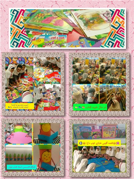 در مدرسه هر هفته نمایشگاه کتاب برگزار می شود و دانش آموزان عزیز با انتخاب یک کتاب تا هفته بعد پیام کتاب را به مربی خود ارائه می دهد.